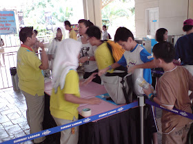 The National Blood Institute came to my campus a few days ago to er, harvest fresh young blood. J Why not, I thought. Afterall I have never donated blood before this. A friend and I decided to try it today. To the others that just would NOT join us, it's your loss.